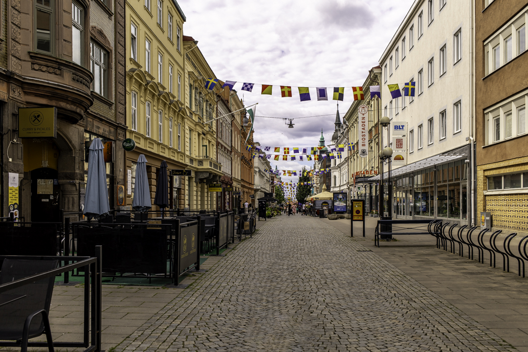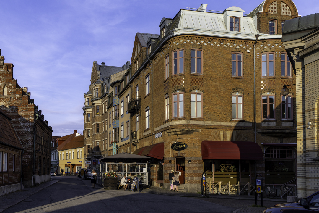Ystad è una graziosa cittadina del sud della Svezia, arriviamo qui al tramonto. Il centro è piuttosto deserto, immagino che siano tutti al mare. Questa è una regione di villeggiatura e la bella temperatura invita a star fuori.