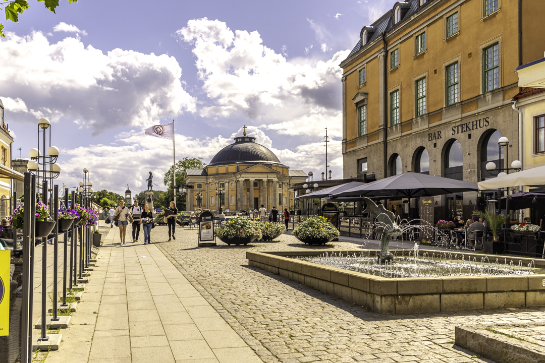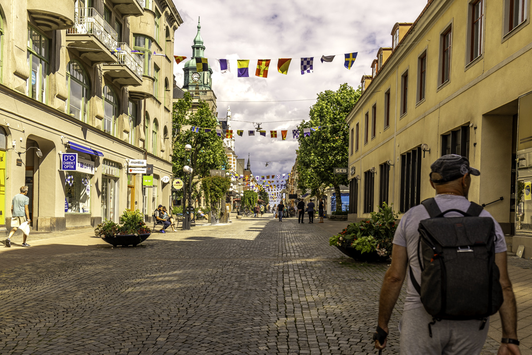 Karlskrona è una cittadine che sorge su diverse isolette collegate tra loro da ponti. La zona pedonale è piena di ristoranti e bar, affiancati da negozi. Siccome arriviamo qui di domenica, la vita è un po’ spenta. La statua di Karl XI tiene sott’occhio la grande piazza su cui si affaccia il municipio.